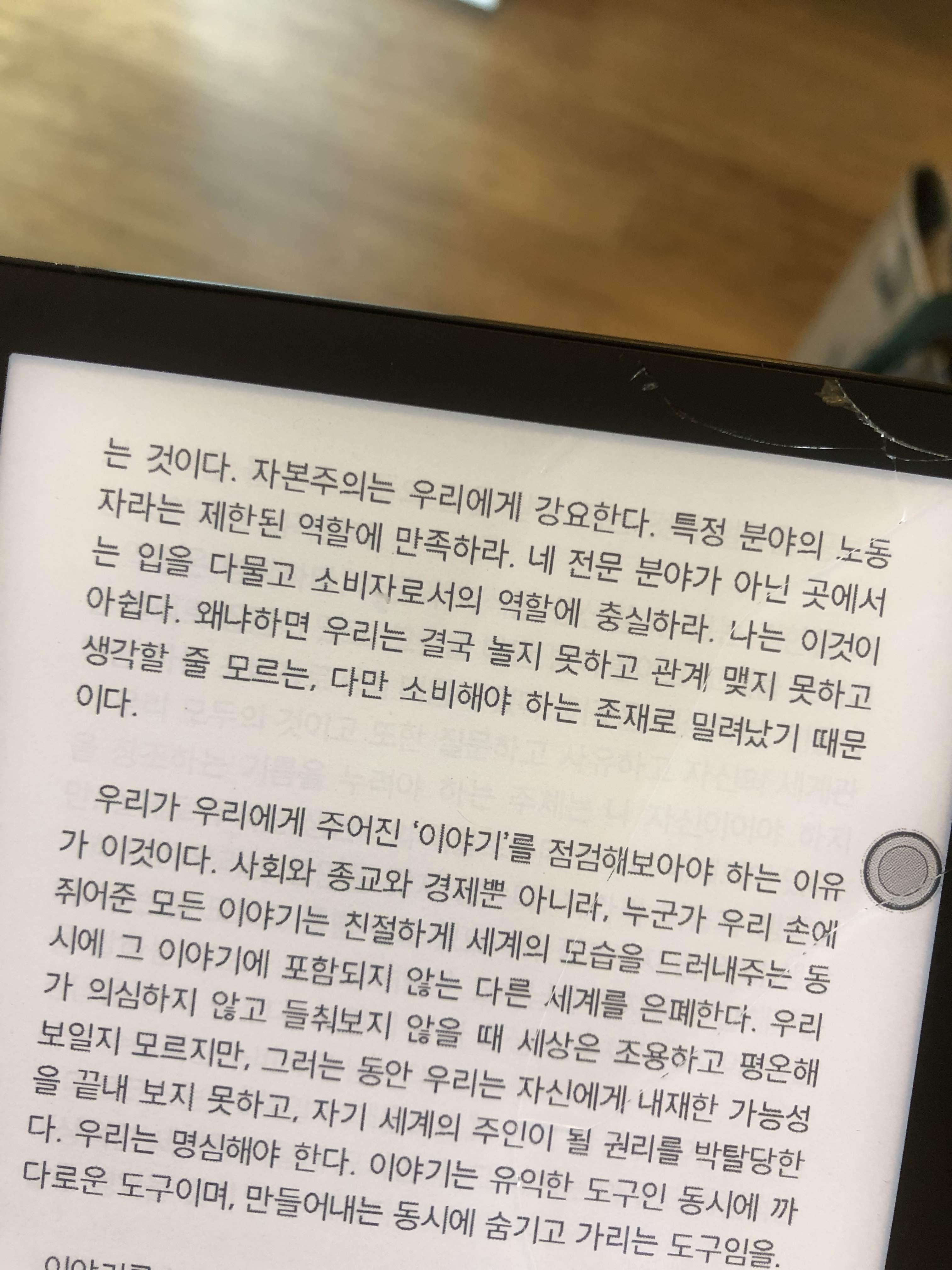 이런 이야기를 들은 적이 있따. 어떤 할머니들은 외출했다가 집에 돌아와서는 자기 냄새를 맡아본다는. 아무도 자신에게 관심을 갖지 않는 이유가 혹시나 몸에서 냄새가 나서는 아닌지 확인해본다는 것이다. 모든 상실의 과정이 결국 나의 상실로 귀결되는 것이었다는 이 받아들이기 힘든 쓸쓸함. 한때 우리는 세상의 주인공이었고 때로는 세상의 관심이 귀찮다고 느꼈었지만, 세상은 언제 그랬냐는 듯 소모되어가는 우리를 그대로 방치할 것이다. 209P